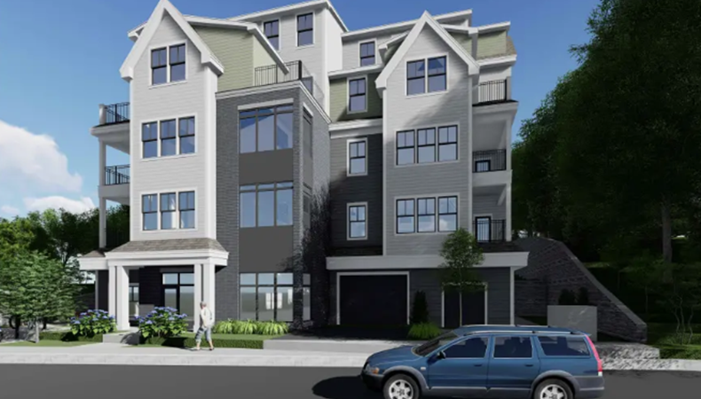 Combine three parcels and erect a new 30 unit residential dwelling with 16 garage parking spaces.