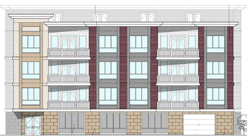 Project consisting of 14 dwelling units in a five-story building, the elimination of the originally proposed ground-floor commercial space, with 21 garage parking spaces.