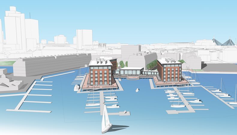 Large Project proposal calls for a 2 building hotel, connected with an enclosed, one story pavilion with approximately 300 rooms, located on an approximately 9 acre site comprising the Lewis Wharf piers and pavement areas.