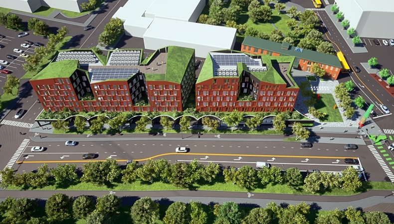 The proposed project is a mixed-use residential and commercial development including the construction of approximately 114 units with both rental and homeownership units. The commercial development includes a 3,000 gsf Gallery/ Café, and 10 live-work units and 10 ground-floor parking spaces. The project comprises 110,000 GSF floor area in 5-6 story stepped mass up to approximately 65 feet in height. The development also includes a public park to be tentatively called “Roxbury Gateway Park” on a 47,333 SF site (including the restricted area) owned by the City of Boston and the Commonwealth of Massachusetts (“Proposed Project”). The Project Site is bounded by Washington Street, Melnea Cass Boulevard, and Harrison Avenue and is currently occupied by a surface parking lot.
