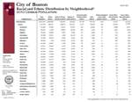 This publication is the distribution of Race and Ethnicity by Neighborhood for the 2010 Census Population of Boston. This report has been revised to use the boundaries for the West End and Downtown that went into effect in 2014. See the revised report using the new boundaries