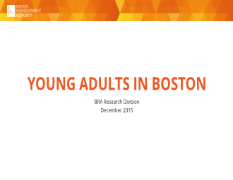 | Young adults are a key demographic in Boston, making up about 40% of the population. This report examines the young adult demographic, using primarily 2014 American Community Survey data.