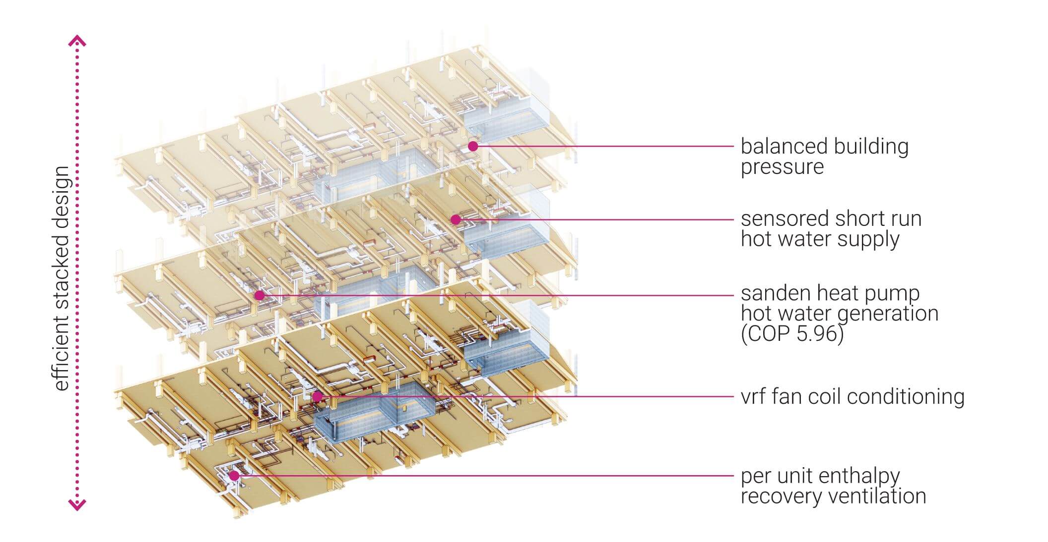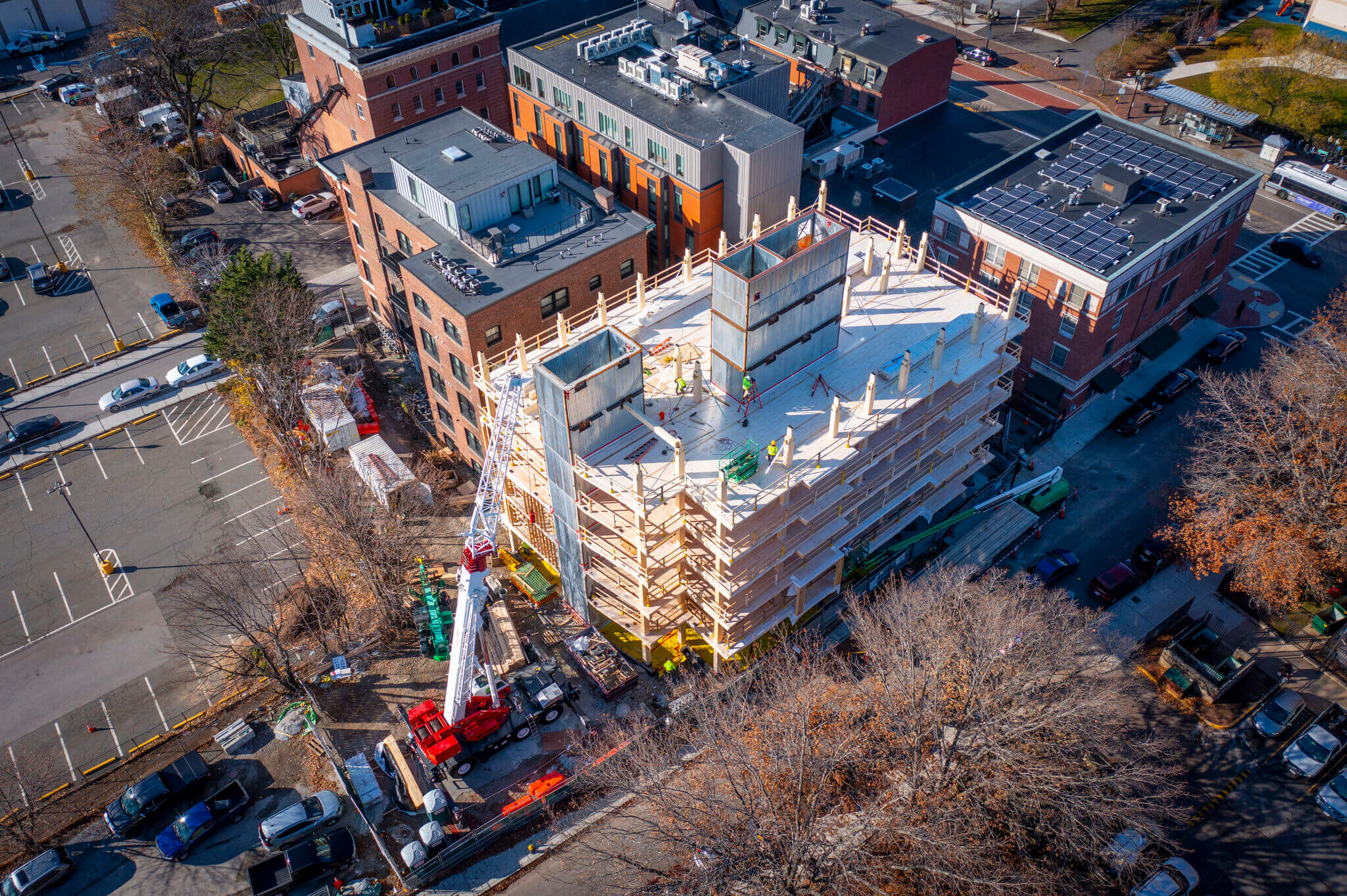 11 East Lenox is the first ground-up mass timber structure in the City of Boston, demonstrating a sustainably sourced carbon-neutral alternative to concrete and steel mid/high-rise construction. It is also in the first wave of Passive House Certified multi-family residential buildings in the City of Boston. In meeting Passive House building criteria, performance will far exceed the more prescriptive Massachusetts Stretch Energy Code and LEED building requirements, with energy consumption that is nearly 10% of that of typical new construction. Embodied Carbon Reductions in Mass Timber are significant, which are 844 metric tons of CO2 stored in timber; and 327 metric tons of CO2 offset by utilizing mass timber in lieu of concrete or steel Carbon sequestering structural frame with lower embodied carbon footprint. Other embodied carbon reductions include upcycled/ reused rigid foam insulation; recycled glass aggregate sub-slab insulation; overstock brick cladding. The project will offer a quiet, comfortable living environment, high indoor air quality, energy efficiency, and reduced utility costs for tenants.