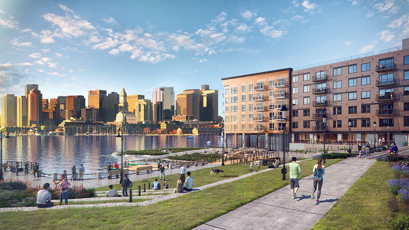 To reduce the flood risk, the residential first flood is raised, there is integrated flood barricades to protect low spaces, and durable public spaces are provided.The project creates approximately 34,400 square foot of new intertidal zone consisting of tidal flats, coastal banks, rocky intertidal shores, and salt marsh from existing solid fill at the end of the western wharf. The new wetlands help to improve the water quality and habitat of Boston Harbor to allow users to access the water including a community kayak center. The project has completed a new section of Harborwalk 6.5 feet above the high tide level to increase site and building flood resiliency. The building will also install solar panel array to provide electricity services, is designed to use 20% less energy allowed by the Massachusetts Stretch Code, and is forecasted to achieve a 30% energy cost savings.